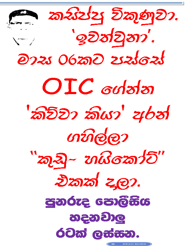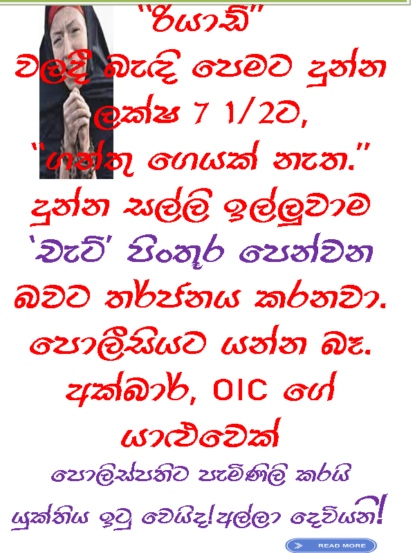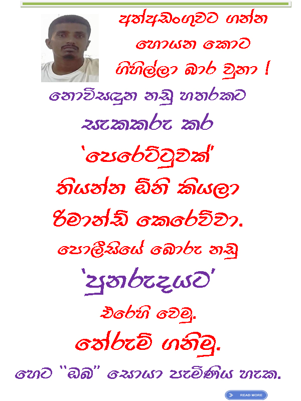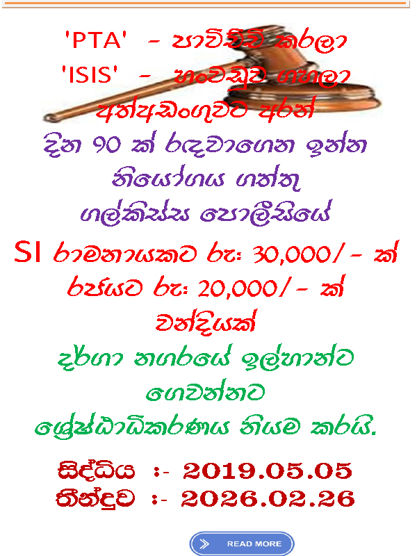 Tel :+94 77 3201269, +94 38 2231419, +94 77-3201270.